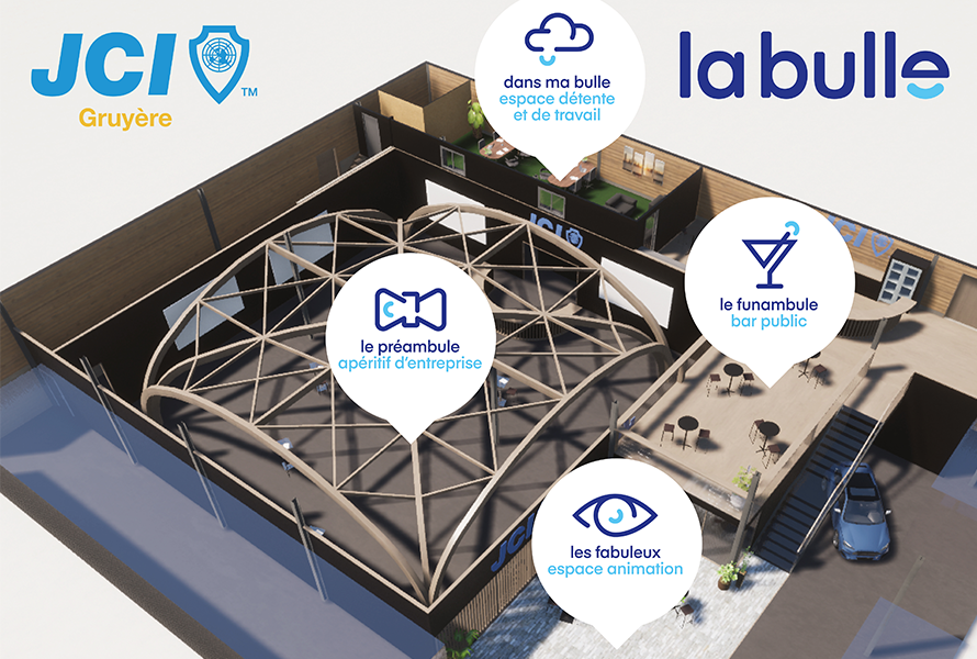 La Jeune Chambre Internationale est une association neutre et indépendante, ouverte à toute personne de 18 à 40 ans assumant des responsabilités professionnelles ou sociales dans la vie publique ou privée, qui souhaite par exemple développer son sens de la responsabilité communautaire ou contribuer à la résolution de problèmes économiques et d’intérêt public de la communauté. Fondatrice du Comptoir gruérien, la JCIG se réjouit de vous retrouver lors de cette 11ème édition. Vous aurez l’occasion de découvrir sur le stand "La Bulle" différentes animations, un bar public, un espace de coworking et une offre d’apéritifs d’entreprise.